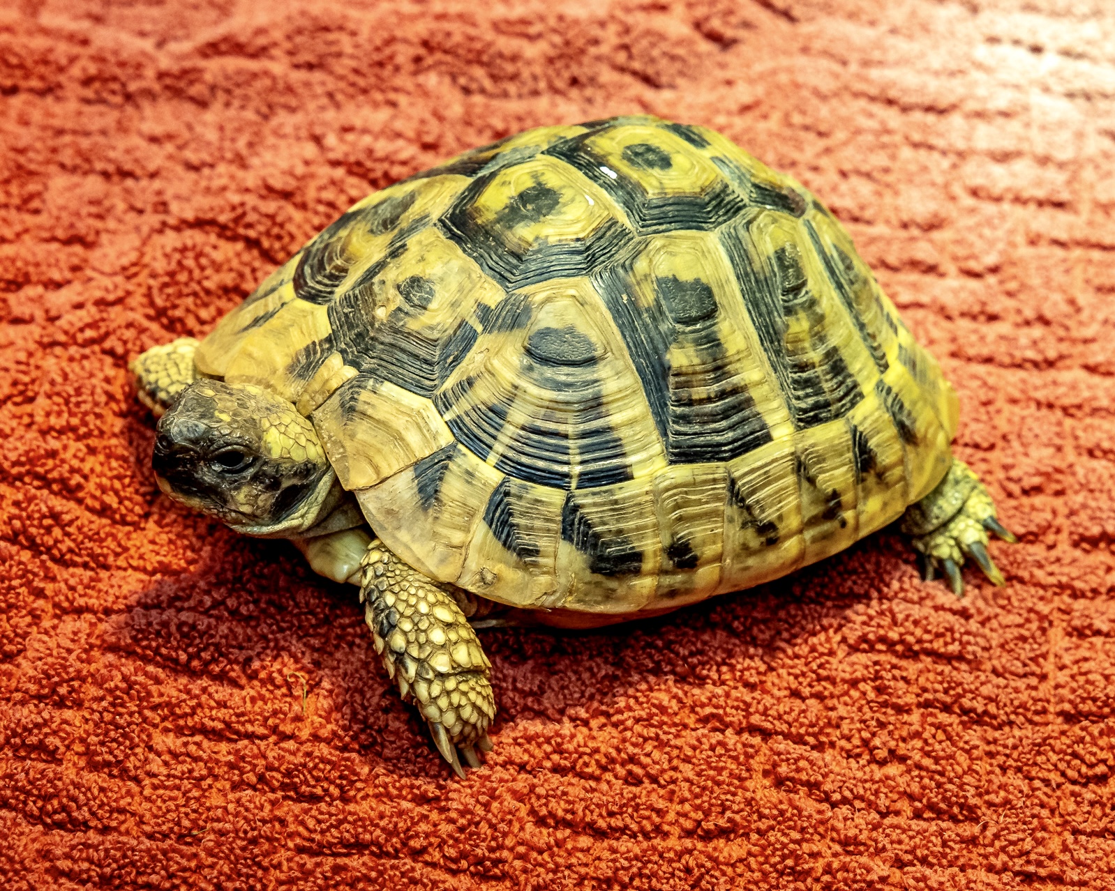 Griechische Landschildkröten können bis zu 25 cm groß und 2 kg schwer werden. Ursprünglich stammen sie aus trockenen Steppen und sollten daher nicht zu feucht gehalten werden. Apfelsinchens Vorzugstemperatur liegt daher bei warmen 30°C, jedoch freut sie sich über einen Sonnenplatz mit bis zu 45°C. Um sich jederzeit die richtige Temperatur aussuchen zu können, ist ein Temperaturgefälle sehr wichtig, mit kühlen Bereichen bei ca. 25°C.